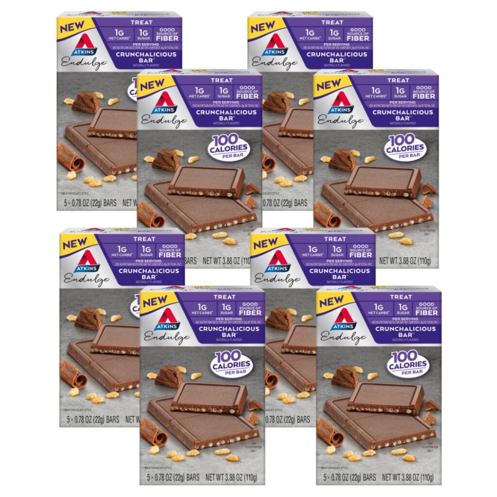 Atkins Endulge, Crunchalicious Bar, 1g Net Carbs, 1g Sugar, Good Source of Fiber, 5 Count (Pack of 8)