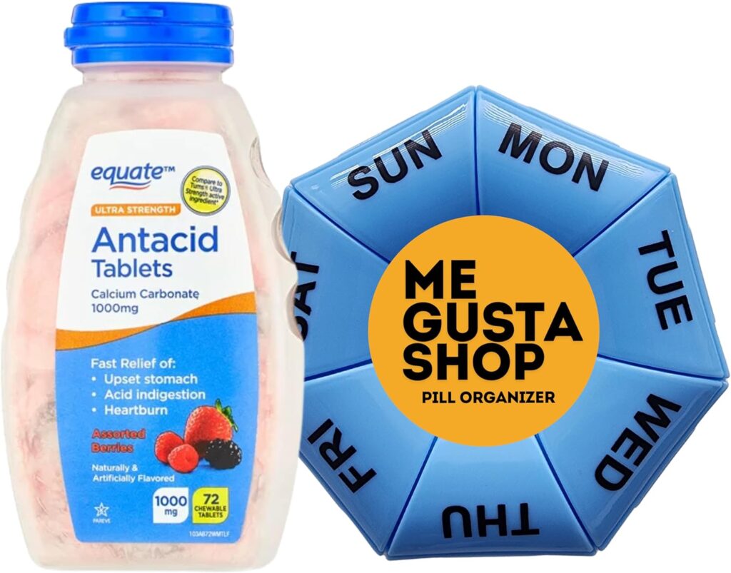 Equate Ultra Strength Antacid Chewable Tablets, 1000 mg, Assorted Berries, 72 Count Includes Pill Organizer