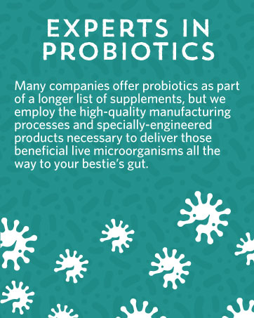 A HEALTHY GUT SUPPORTS OVERALL HEALTH. Fidobiotics’ specific 11 probiotic strains help provide strong dog immune support, optimal dog seasonal allergy support, maintain proper nutrient absorption, and help maintain proper metabolic health.