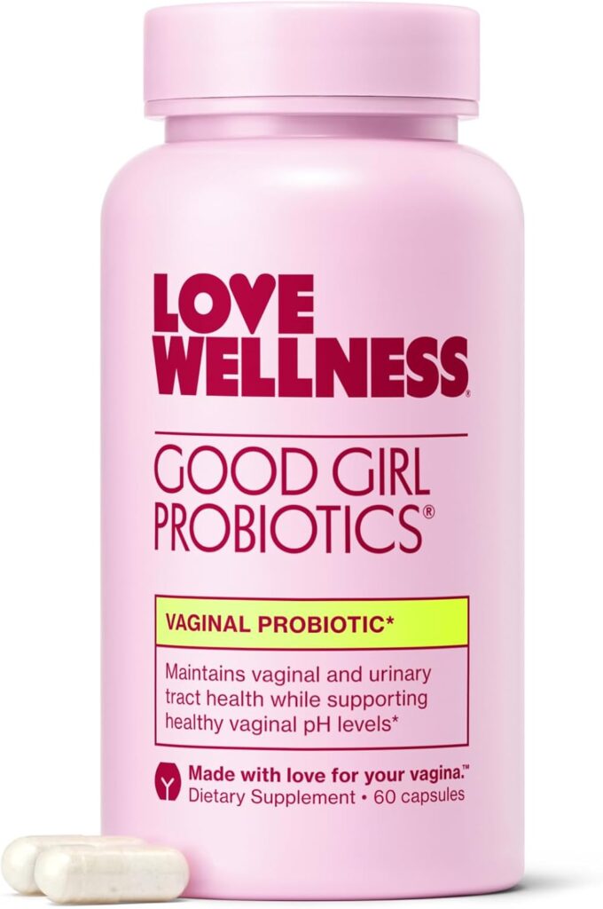 VAGINAL PROBIOTICS: Good Girl Probiotics by Love Wellness is a vaginal support supplement for women. It helps maintain a balanced pH, immunity, urinary tract health, and healthy yeast levels.* Serving size 2 capsules, 30 servings per bottle.