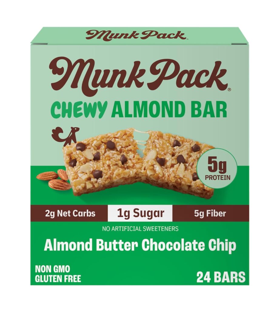 Munk Pack Keto Granola Almond Butter Cocoa Chip Bar, Gain Free and Plant Based, 1G Sugar, 2G Net Carbs, 5G Protein, 4 Count, 4.52 Oz (Pack of 6)