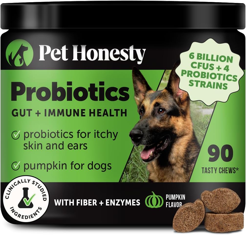 Premium natural ingredients + made in the U.S.A. – At Pet Honesty, we’re committed to premium quality ingredients and strict safety standards. Our Probiotic dog chews are made with natural ingredients and contain zero wheat, GMOs, corn, soy, sugar, and harsh preservatives. We manufacture in the U.S. in a GMP-certified facility and only use the highest-quality, U.S. and globally sourced ingredients with natural digestive health properties like pumpkin and natural probiotics.
