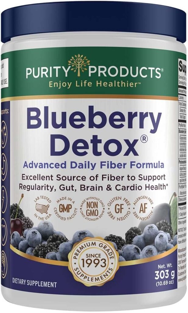 Blueberry Detox makes it easier to up your fiber intake with 6 grams of fiber from psyllium. Getting enough of the right kinds of fiber into your daily diet is essential for digestive health. Fiber helps your body process the other foods that you eat. It can help keep your bathroom trips regular and more comfortable, as well as help manage blood sugar levels and cholesterol already in the normal range.* Which means that fiber is good for your heart too!* Your Brain on Berries
