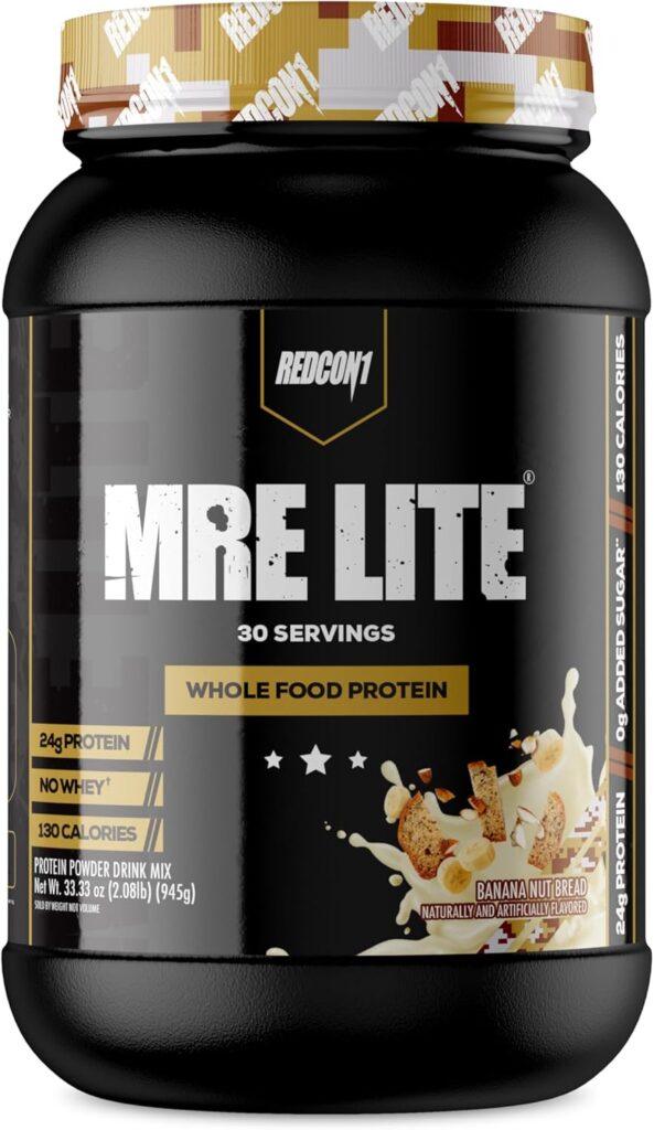REDCON1 MRE Lite Whole Food Protein Powder, Banana Nut Bread – Low Carb & Whey Free Meal Replacement with Animal Protein Blends – Easy to Digest Supplement Made with MCT Oils (30 Servings)
