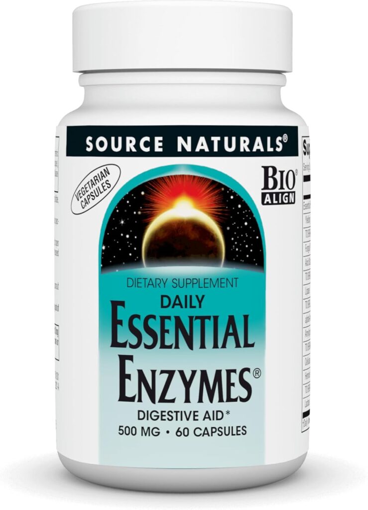 Source Naturals Essential Enzymes 500mg Bio-Aligned Multiple Enzyme Supplement Herbal Defense for Digestion, Gas, Constipation & Bloating Relief – Supports Immune System* – 60 Vegetarian Capsules